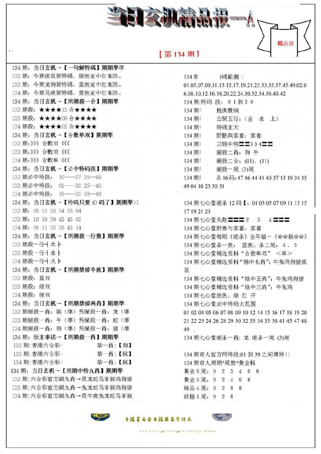 134期-当日玄机精品报A