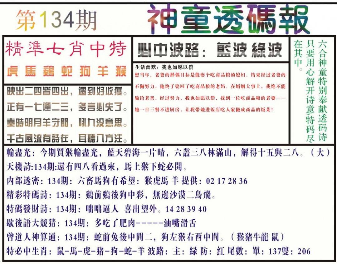 134期-神童透码报(正版)